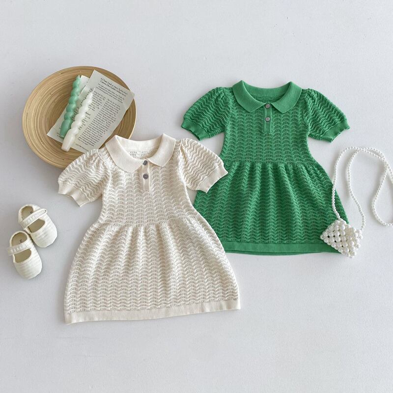 子供服 女の子 ニット 森ガール ワンピース 半袖 パフスリーブ 可愛い おしゃれ
