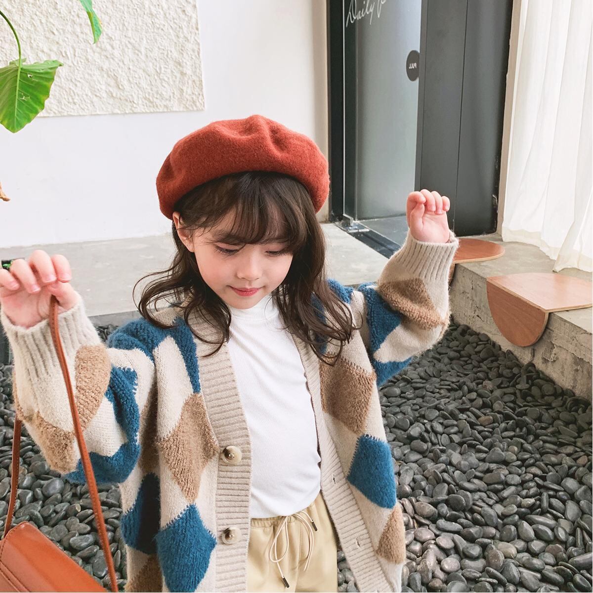 3-8歳ガールズ 韓国風子供服 チェック柄 ニット上着 カーディガン ジャケット 130-170