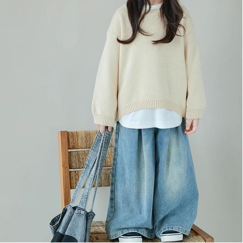 おしゃれで元気な女の子にぴったりな、韓国風の可愛いデニムワイドパンツが新登場!トレンド感満載のデザインと心地よい着心地が特徴のこのアイテムは、日常使いから特別なお出かけまで幅広く活躍します!