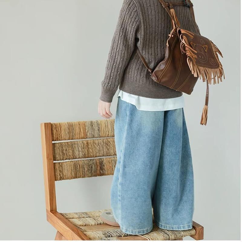 キッズ ガールズ 韓国風子供服 ジーンズ ジーンズ ズボン デニム ワイドパンツ 7-17