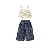 韓国風子供服 ガールズ 花柄 キャミソール上着+ワイドパンツ 上下セット 90-140