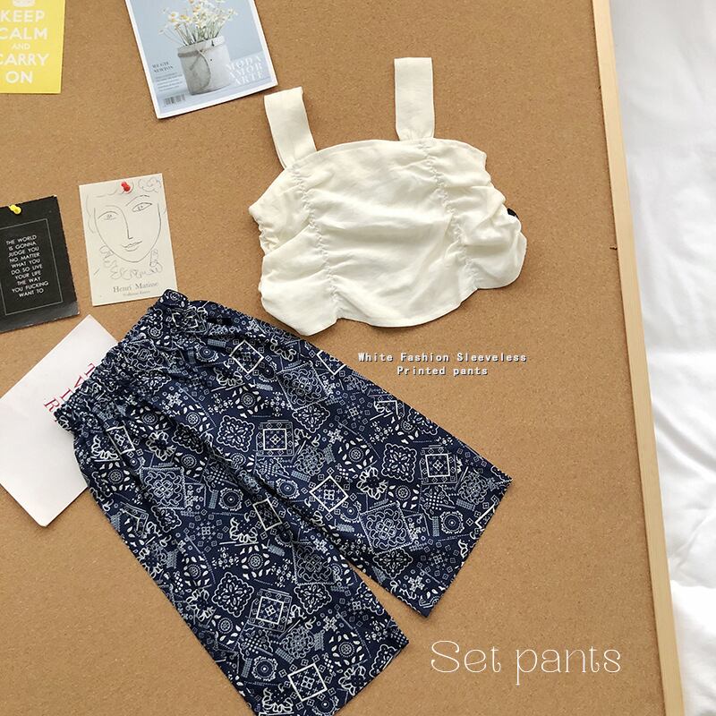 # 新作★韓国風子供服★上下セット★花柄キャミソール上着+ワイドパンツ★キュート★女の子用★90-140CM