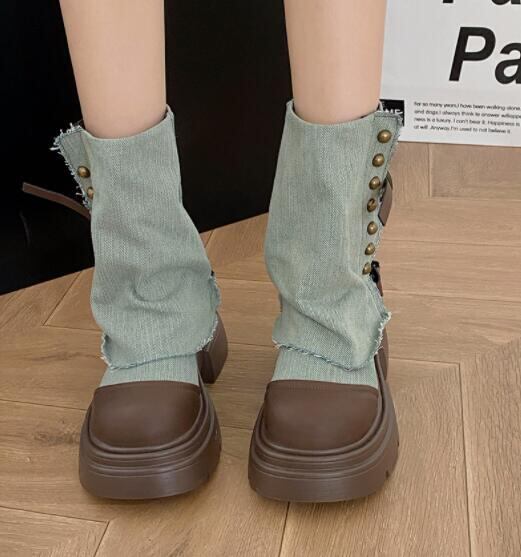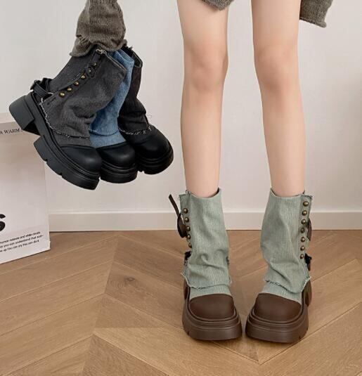 # 新作★靴 レディース シューズ ブーツ ショートブーツ 厚底 デニム★