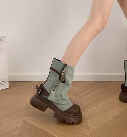 靴 レディース シューズ ブーツ ショートブーツ 厚底 デニム