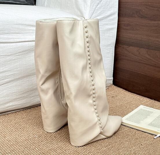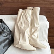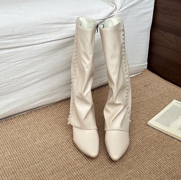 # 新作★レディースブーツ★ロング★スタッズ★フェイクレザー★尖り★ウェスタンブーツ★