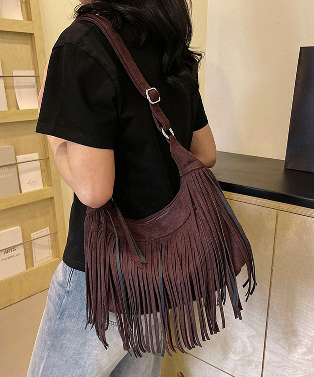 おしゃれでレトロ感漂うフリンジショルダーバッグです。