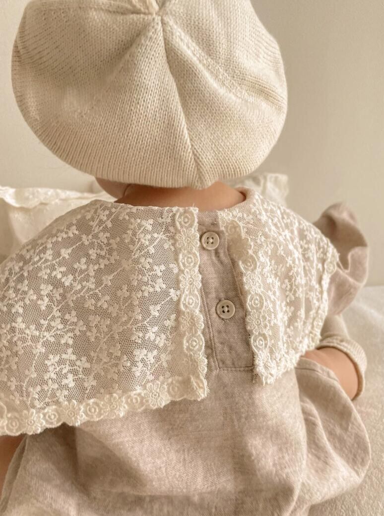 ・軽やかな素材感で、春や夏のお出かけにぴったりの一枚。肩ひもでサイズ調整もでき、成長に合わせて長くお使いいただけます!