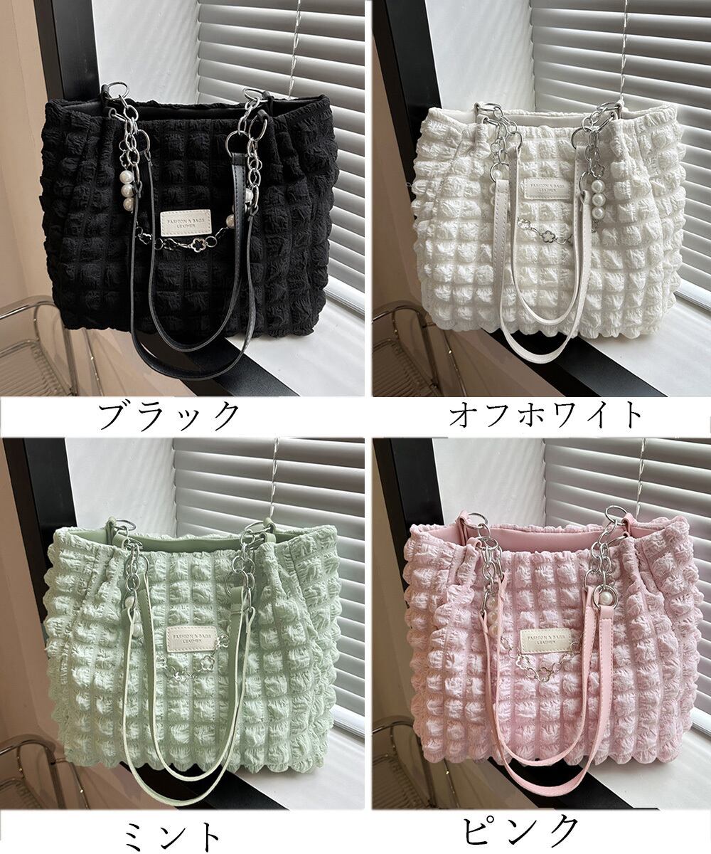 ぷくっと立体感のあるポップコーン生地がおしゃれで、持つだけでこなれ感が漂うトートバッグ