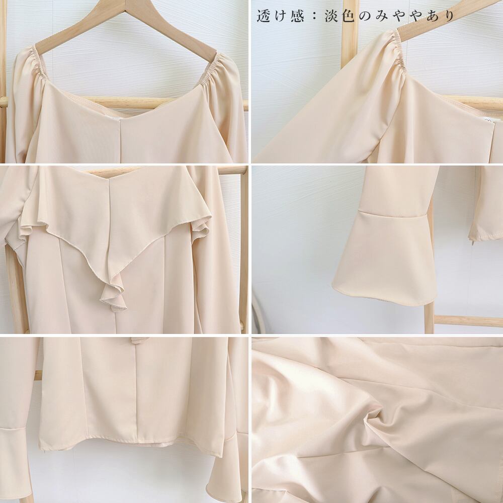 レディース ラッフルカラー とろみブラウス パフスリーブ トップス フレア袖 おしゃれ ブラウス きれいめ 春先行 人気