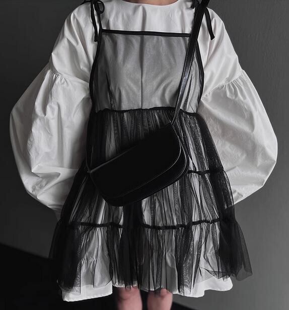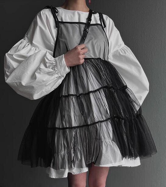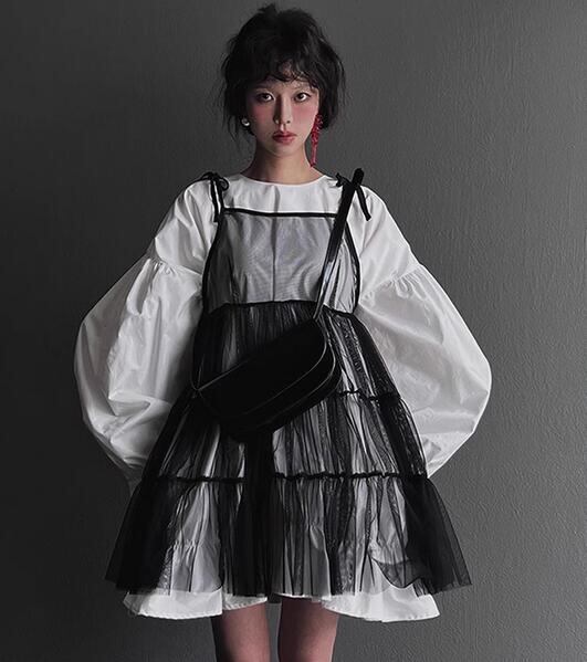 # 春夏新作★ガールズ シャツワンピース キャミソール レース メッシュ シースルー バルーン袖 韓国風
