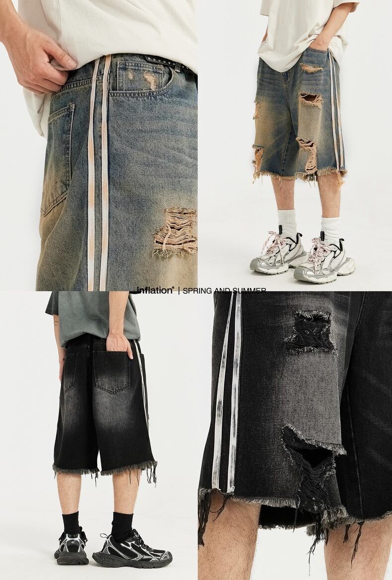 P17696 ハーフパンツ ヴィンテージ メンズ 男 ズボン ダメージ デニム 2024新作春夏 ボトムス ファッション