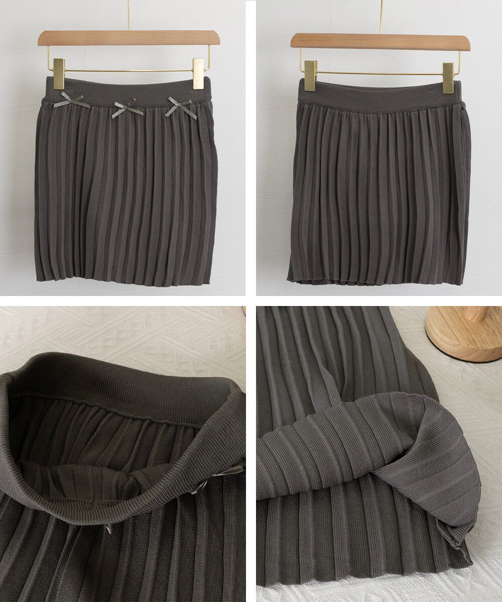 リボン付きプリーツミニスカートレディース