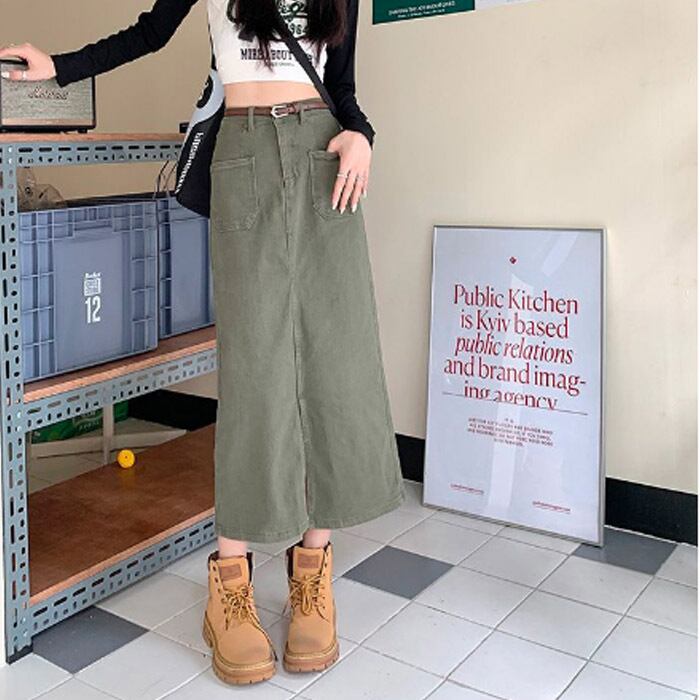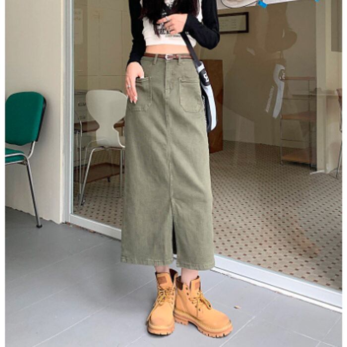 レディース チノスカート 秋冬 きれいめ ボトムス ロング 細め ロングスカート カジュアル カーキ