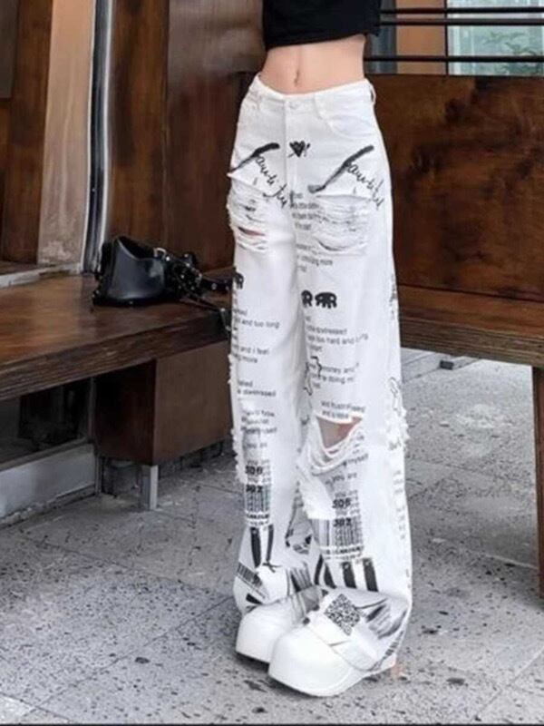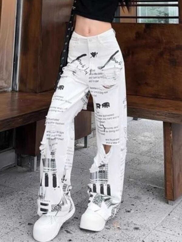 パンツ ボトムス ズボン デニム ジーンズ ジーパン ダメージ加工 プリント レディース