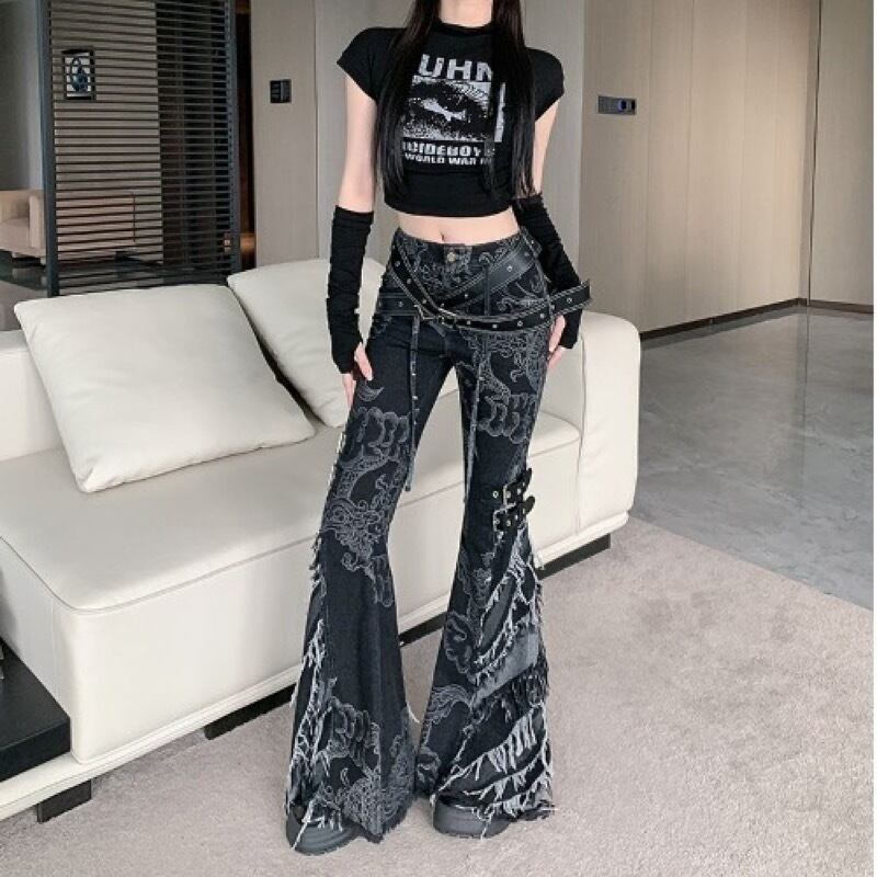 # 新作★レディース★ボトムス デニム フレアパンツ フリンジ ローライズ!