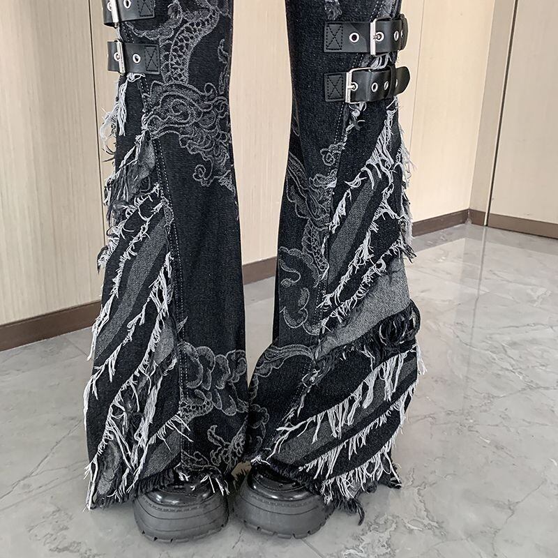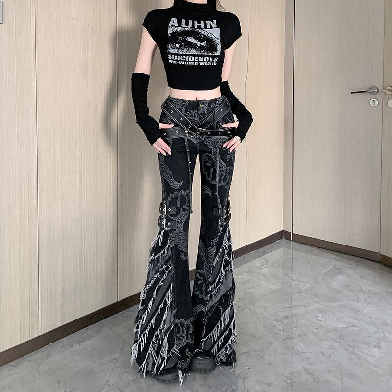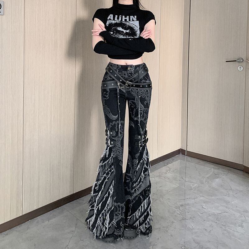 パンツ ボトムス ズボン デニム ジーンズ フレアパンツ フリンジ ローライズ レディース