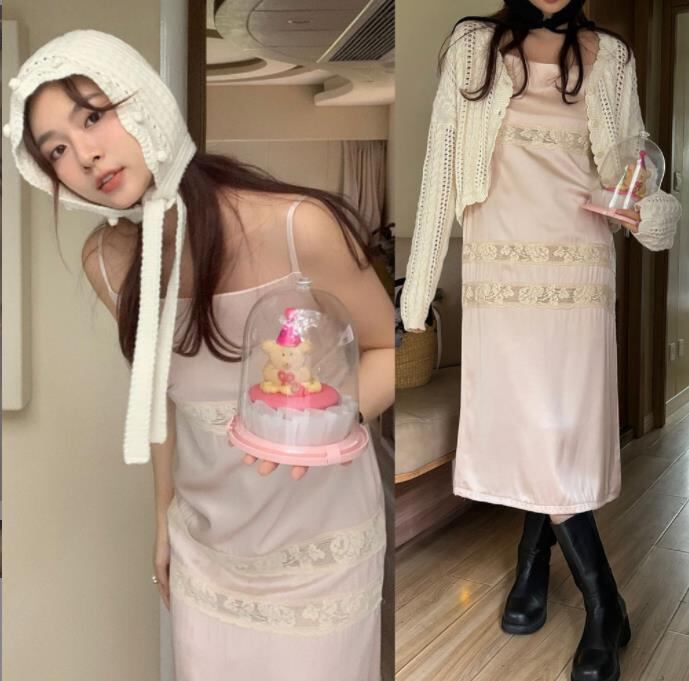 エレガントで女性らしい雰囲気を纏った袖なしレース吊りスカートロングワンピースが新登場!美しいレース素材を使用したこのアイテムは、特別なお出かけからカジュアルな日常まで幅広く活躍します。