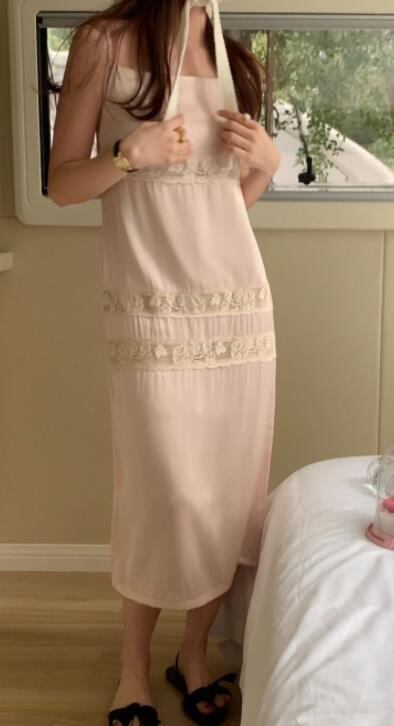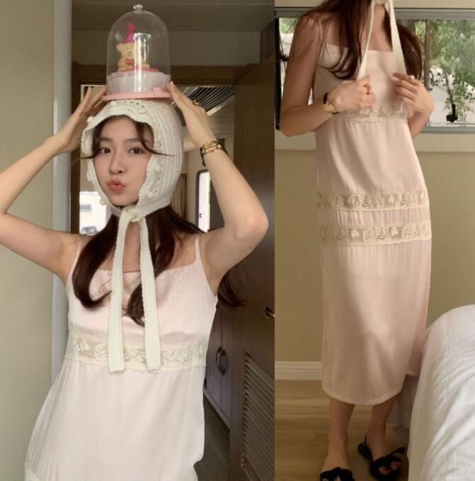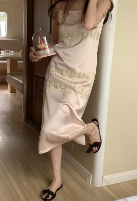 # 新作★レディース★袖なしレース吊りスカートロングワンピース台型スカート!
