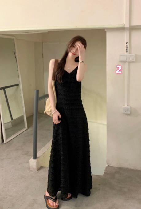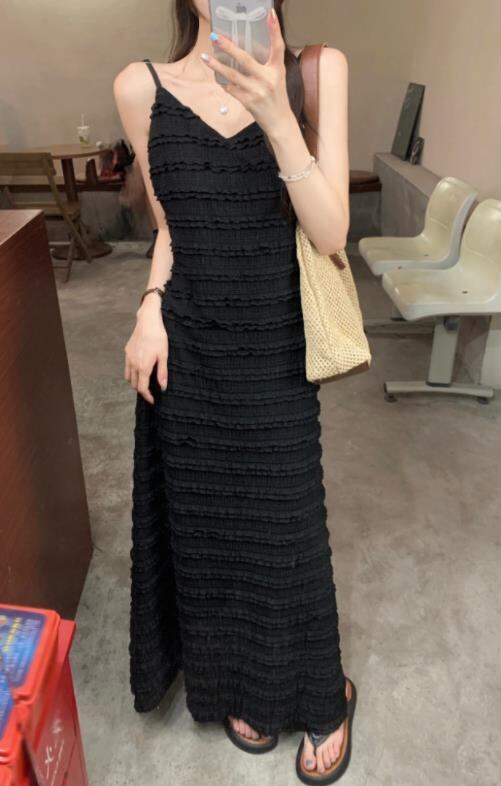 エレガントでスタイリッシュな印象を与えるハイウエスト袖なし吊りスカートロングワンピースが新登場!洗練されたデザインは、特別なお出かけからカジュアルな日常シーンまで多彩に活躍します。