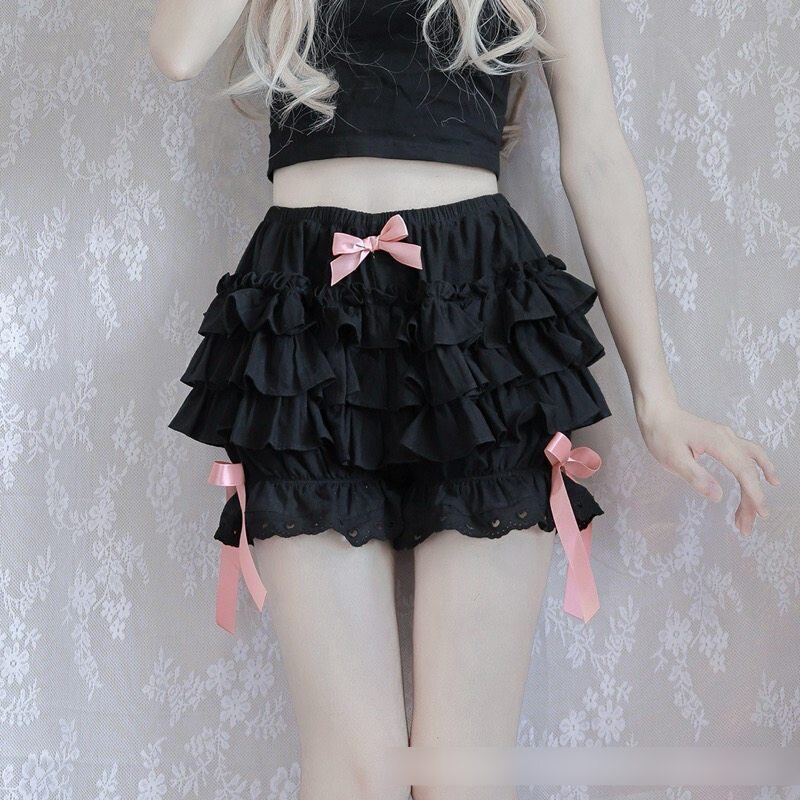 パンツ ボトムス ズボン レース レイヤード ショートパンツ フリル リボン レディース