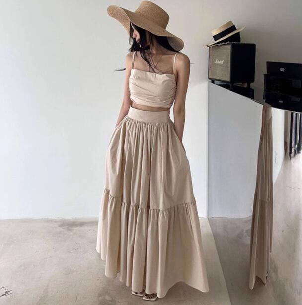 スタイリッシュで女性らしい印象を与える、トップス+スカートのセットが新登場!カジュアルなお出かけやデートなど、さまざまなシーンで活躍するアイテムです。