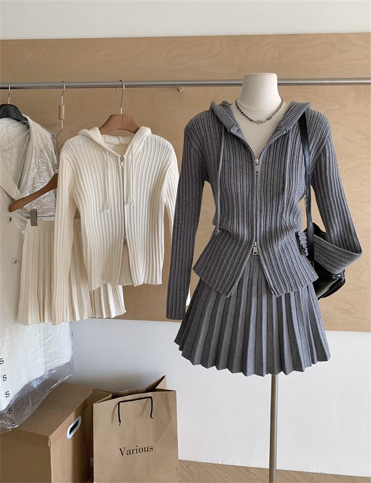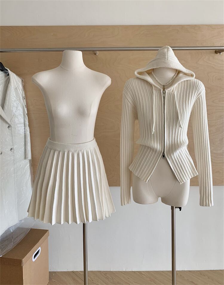 # 新作★レディース★プリーツスカート 長袖 セット カーディガン ハイウエスト ニットトップス!