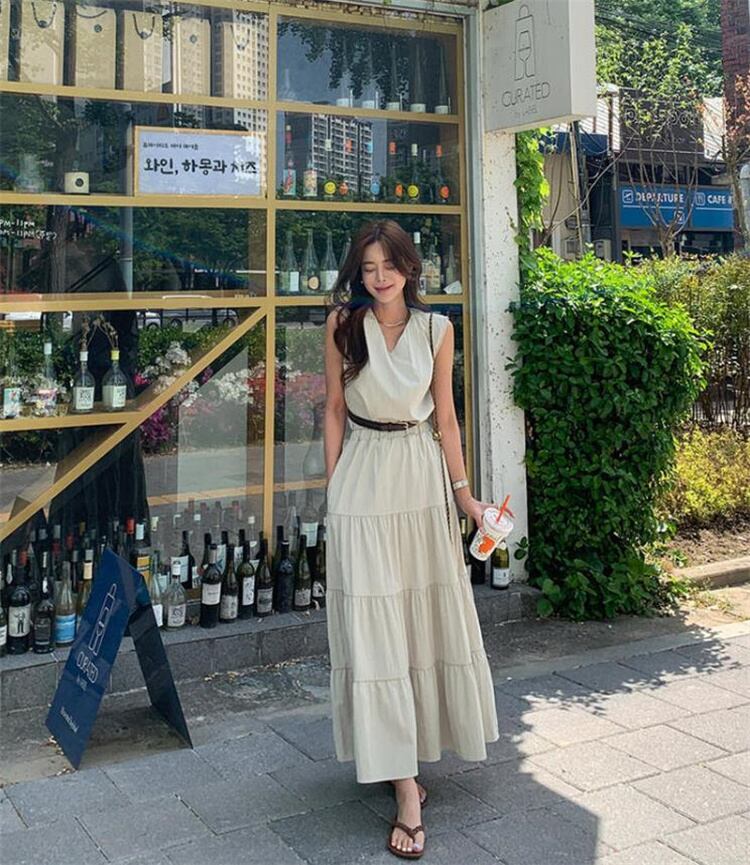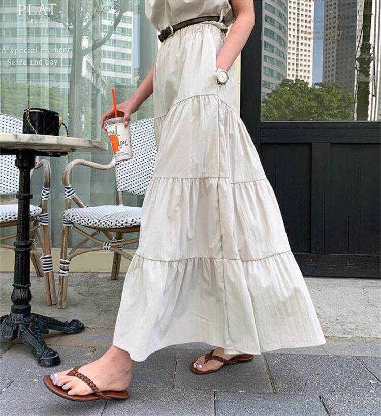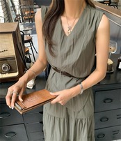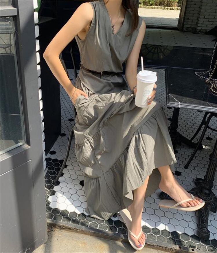 # 新作★レディース★2色 新色入荷 ロングスカート 袖なし ベスト 上着 ケーキスカート ベルト イレギュラー セットアップ!