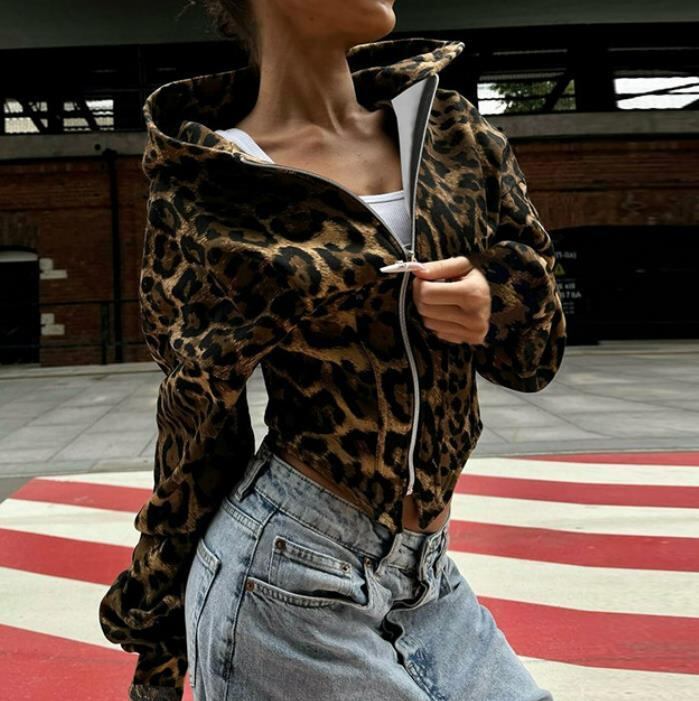 トレンド感あふれるレオパード柄の長袖スウェットアウターが新登場!カジュアルスタイルからおしゃれなコーディネートまで、幅広いシーンで活躍するアイテムです。