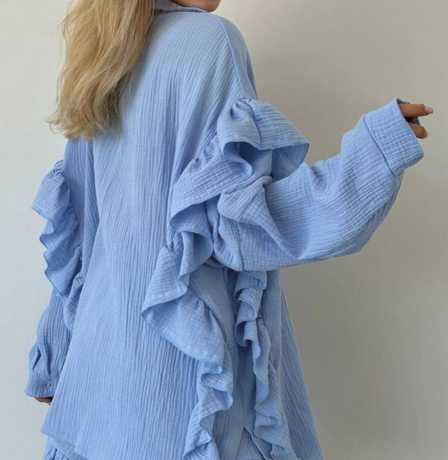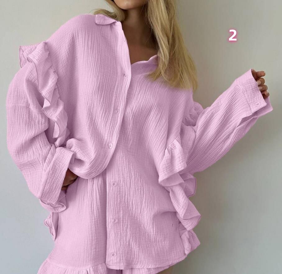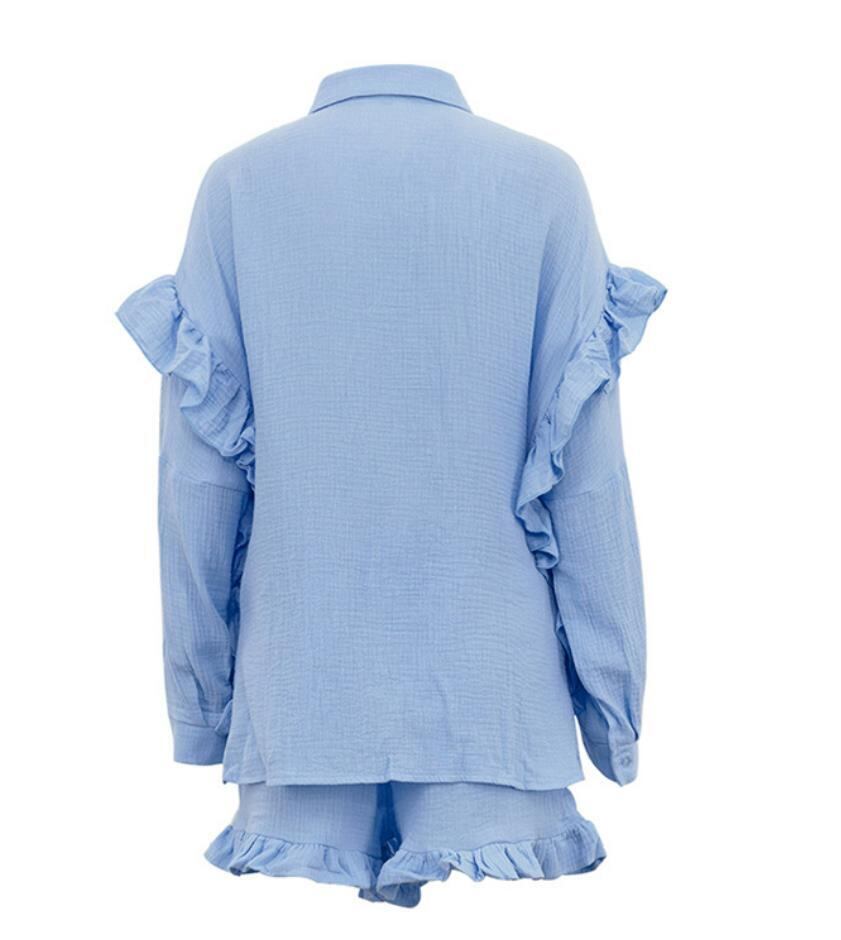 洗練されたデザインのブラウスとショートパンツの2点セットが登場!トレンド感満載のコーディネートが簡単に楽しめ、デイリーユースから特別な日まで、どんなシーンでも活躍するアイテムです!