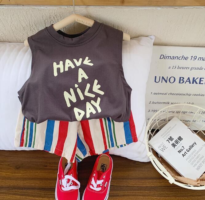 子供服★トップス+パンツ★セットアップ★キッズ男の子★韓国風子供服★袖なし★90-130CM