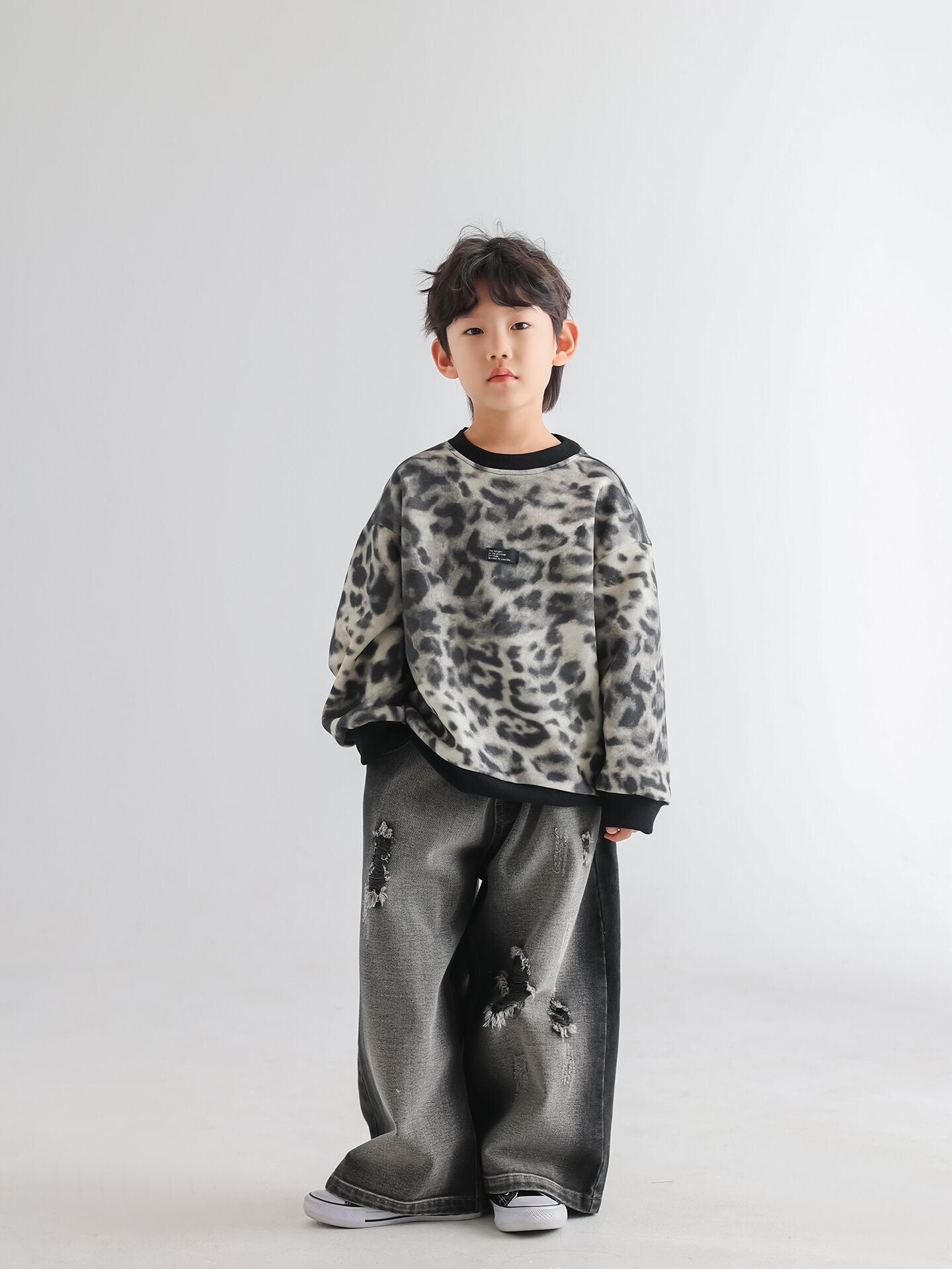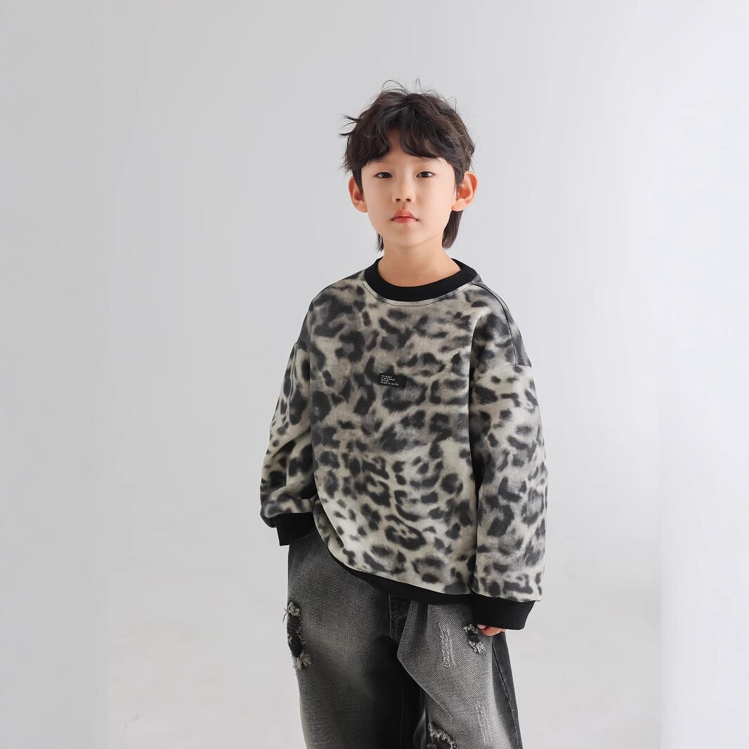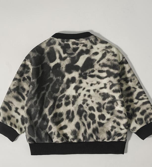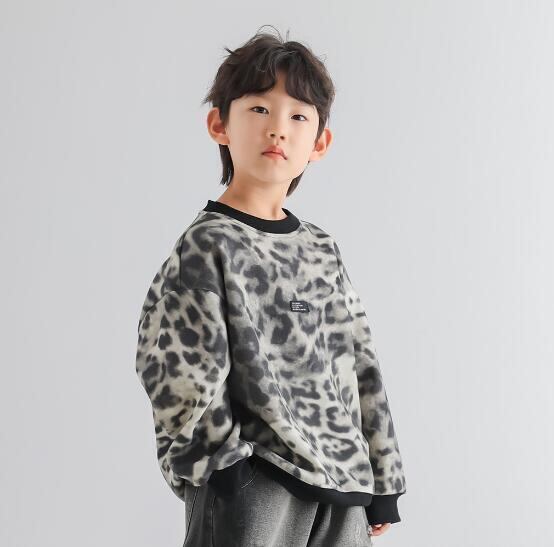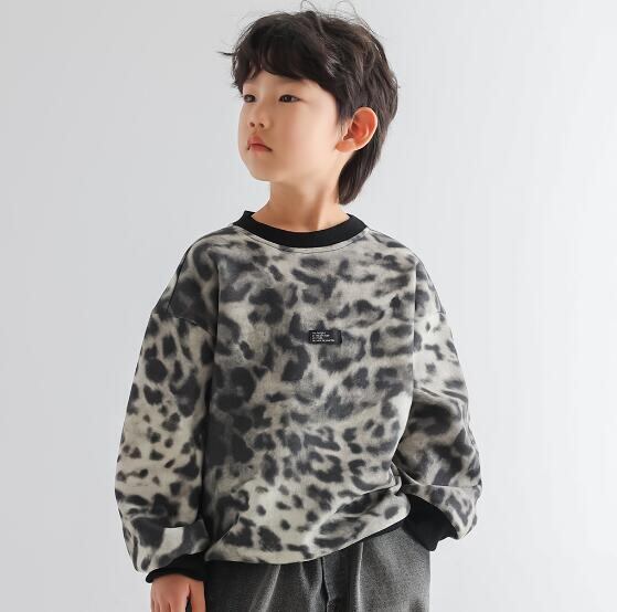 おしゃれで元気なお子様にぴったりの韓国風ヒョウ柄トレーナーが新登場!カジュアルながら個性的なデザインで、様々なスタイルに合わせやすい素敵なアイテムです!